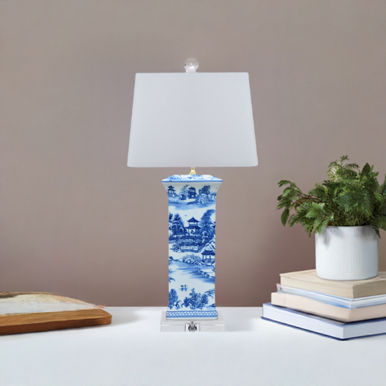 Add a touch of timeless sophistication to your decor with this exquisite Blue White Chinoiserie Porcelain Table Lamp, boasting intricate detailing and a classic silhouette。
