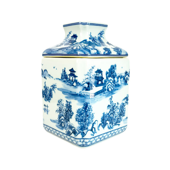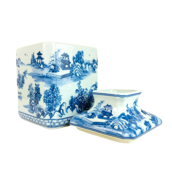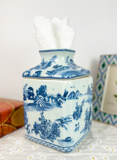 Chinoiserie Porcelain Tissue Box Cover in Blue and White