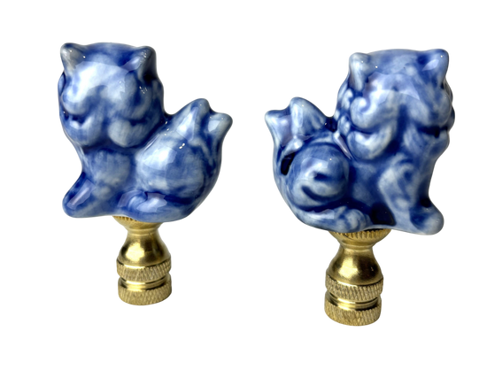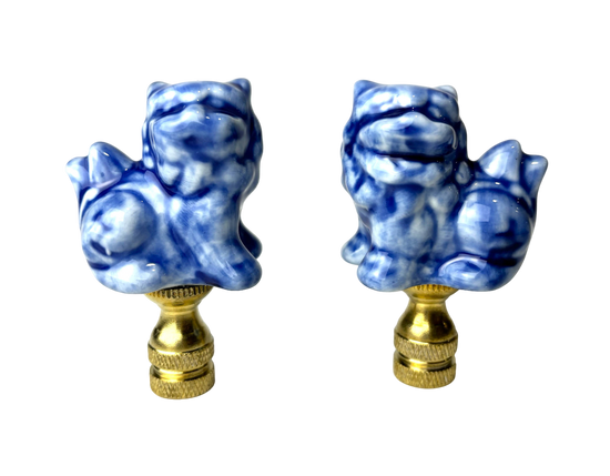 Blue and White Porcelain Foo Dog Lamp Finial Sold as Pair Traditional Elegance