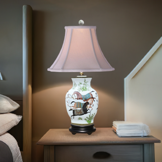Dancing Horse Porcelain Vase Table Lamp