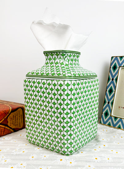 Spring Green Herend Style Fishnet Porcelain Tissue Box Holder