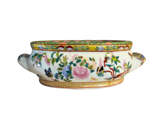 Rose Medallion Chinoiserie Porcelain Small Foot Bath Planters