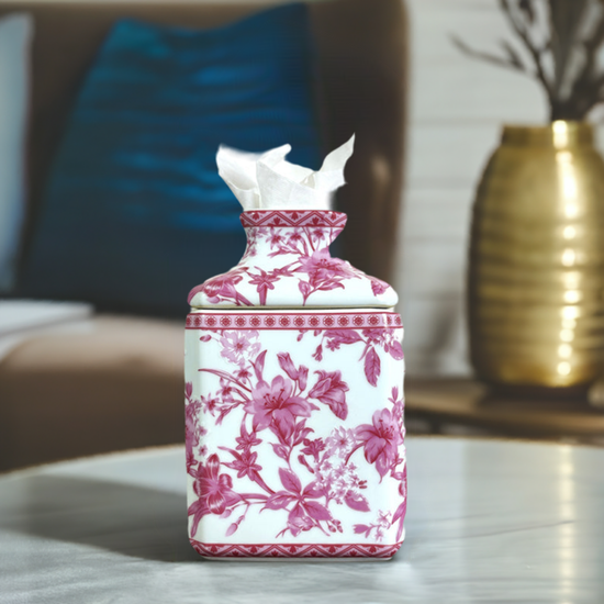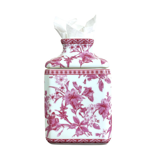 Pink and White Chinoiserie Porcelain Tissue Box Holder Cover