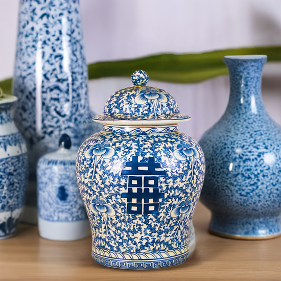 Blue and White Double Happiness Jar, brings joy and luck with its elegant design.